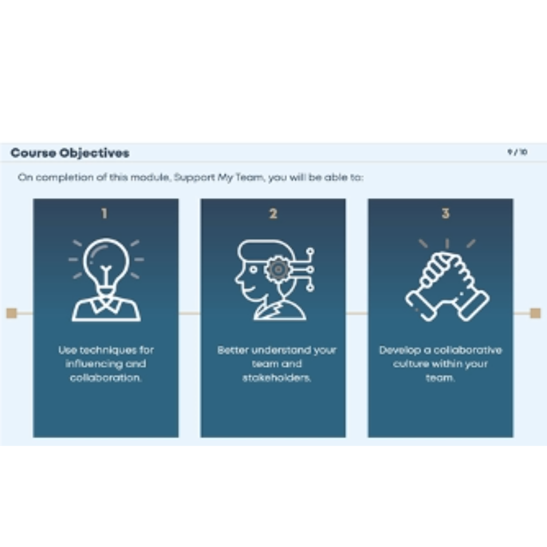 This isn’t dry, text-heavy e-learning – Consalia online combines narration, videos, infographics, interactive elements, and more to keep learners engaged and progressing.